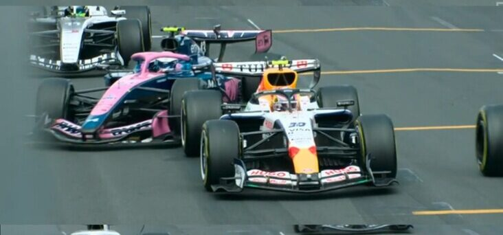 Luego, y al momento de ponerse en marcha la competencia, el Haas de Liam Lawson arrancó con lentitud cuando Colapinto se lo «encontró» casi detenido y debió corregir la trayectoria para no impactarlo de atrás y pasando milimétricamente entre el neozelandés y el muro de boxes, el cual rozó pero pudo continuar sin inconvenientes en el chasis y las suspensiones hasta la bandera de cuadros.
