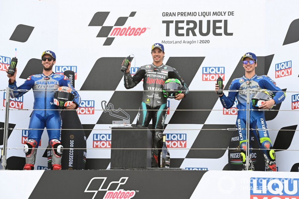Franco Morbidelli no tuvo inconvenientes en la competencia de Aragón, escenario de la 12° fecha de la temporada y por el Gran Premio de Teruel, al dominar gran parte con la Yamaha satélite del equipo Petronas SRT y conseguir su segundo triunfo en la máxima categoría (había ganado en San Marino).